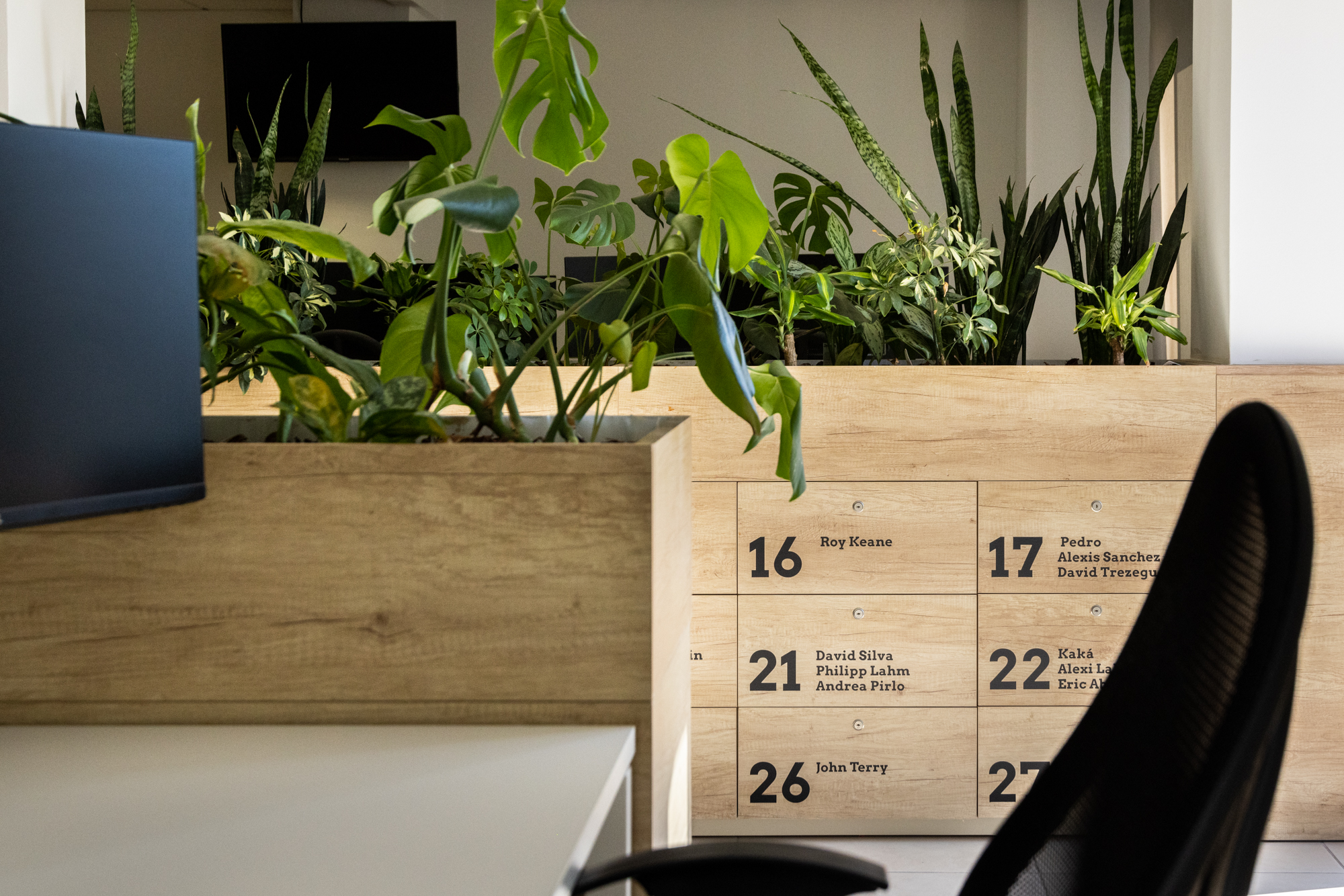 When it came to the spatial planning we knew we didn’t want walls to close the teams in and with the limitations on natural light in the building, not closing off rooms made the most sense. It was important to bring more modern design concepts into the space as well such as noise reduction, privacy for teams that required it and biophilic design. The latter is something we would say is in our brands DNA, the joy and positive impact that nature brings into space is indisputable.