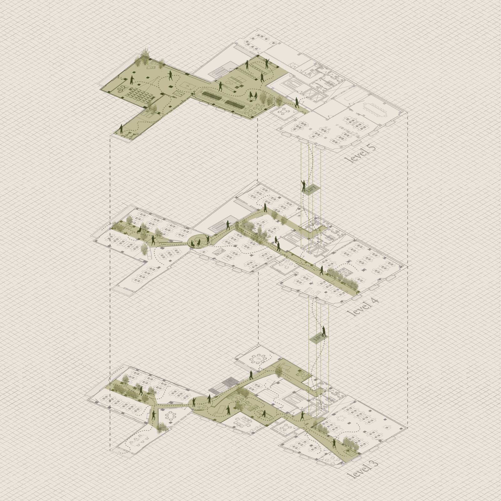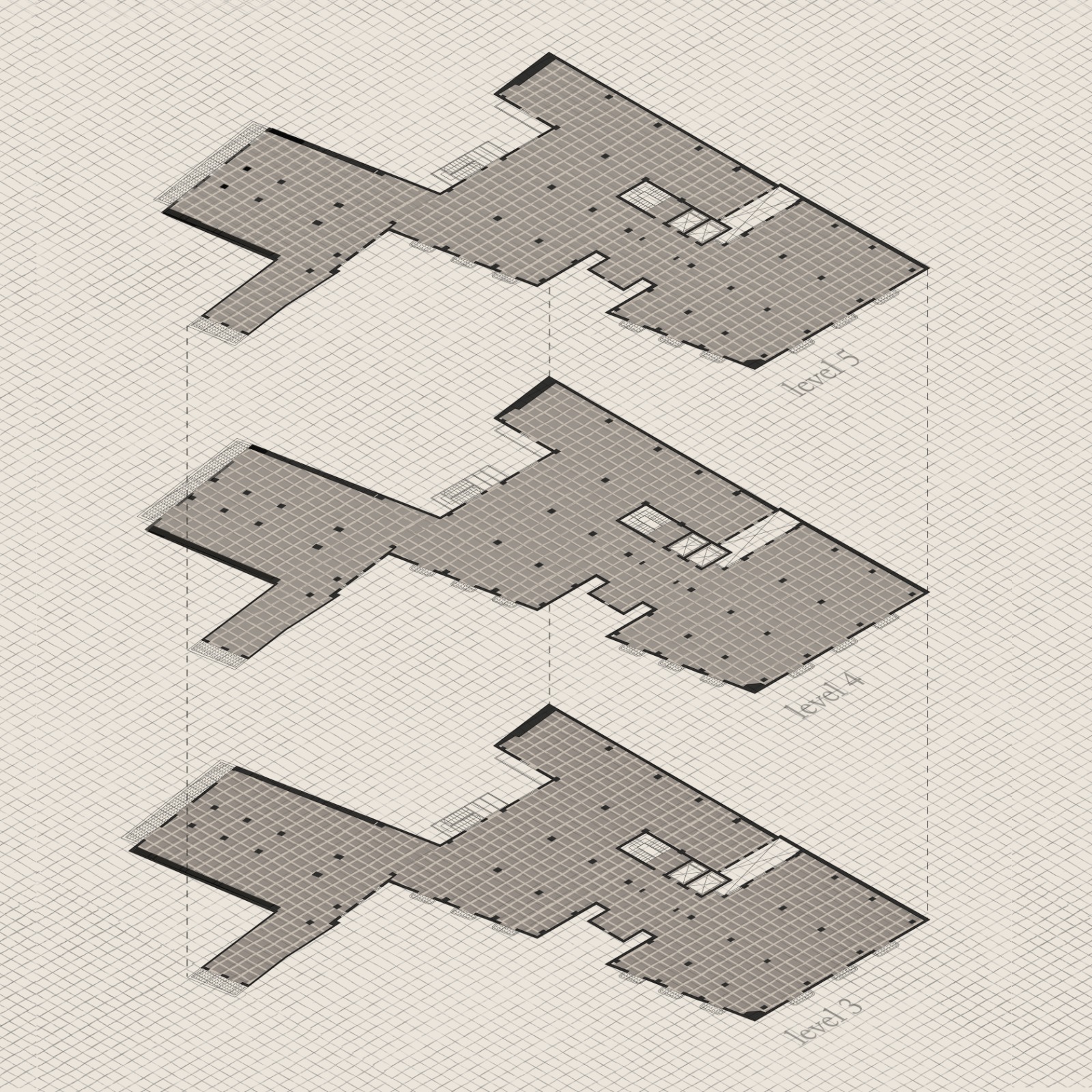 The ‘in-between’ as we called it became the pathway running through the body of the brand and floors.